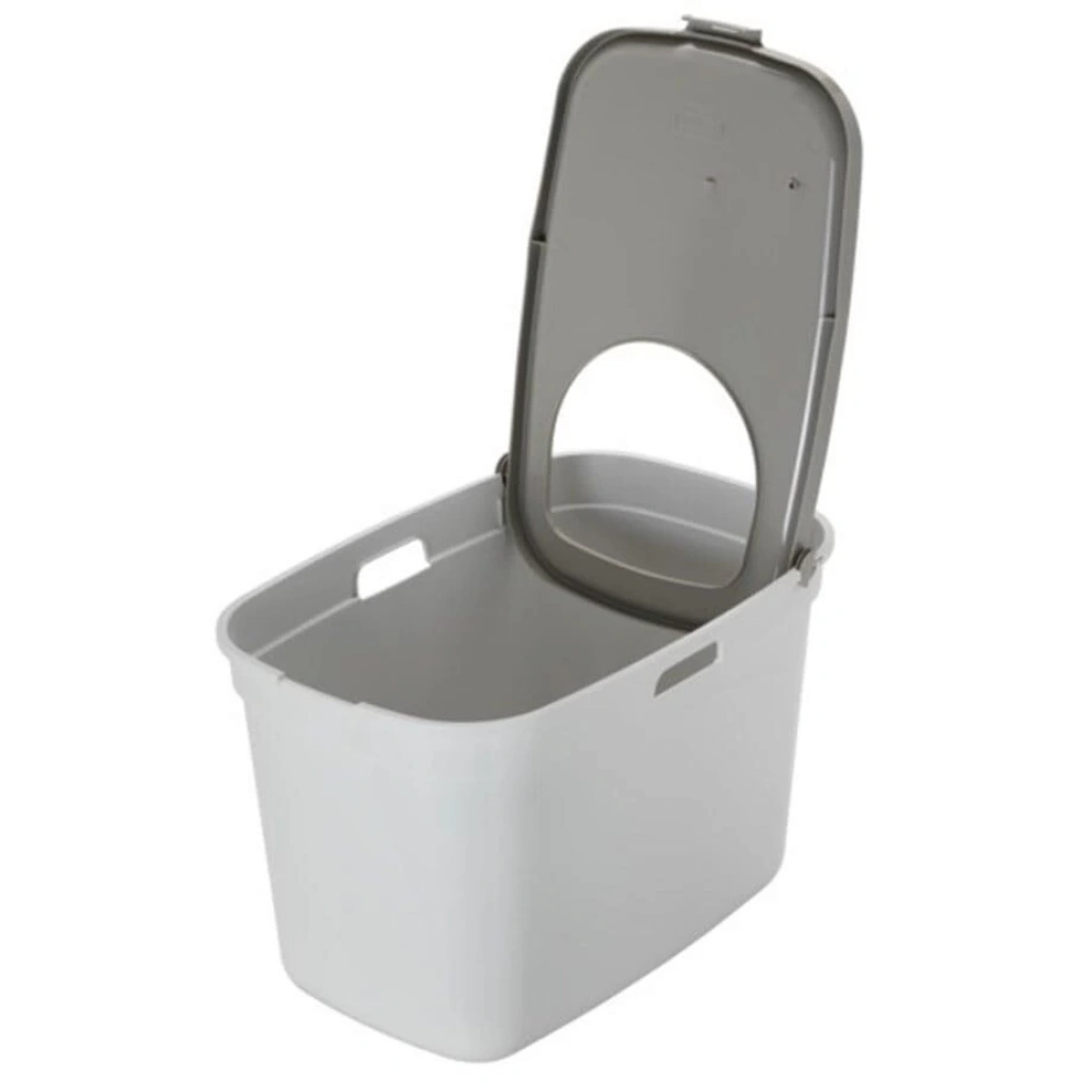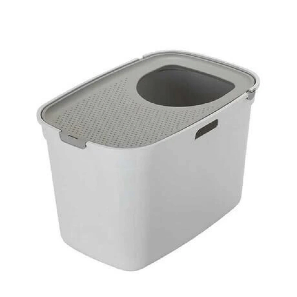 Kediler için, giriş çıkış sağlayan kapısı üste bulunan kapalı kedi tuvalet kabı.