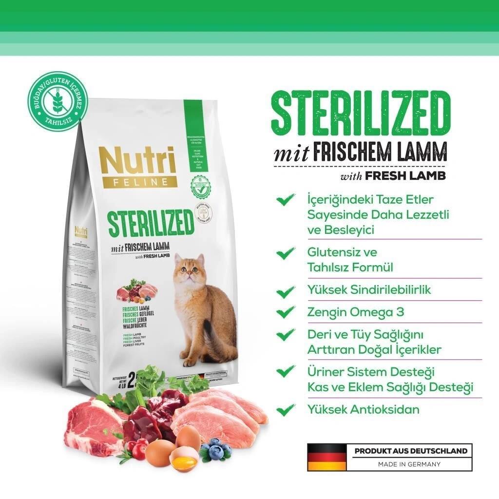 Nutri Feline Kısırlaştırılmış Kuzulu Kedi Maması (10 Kg)