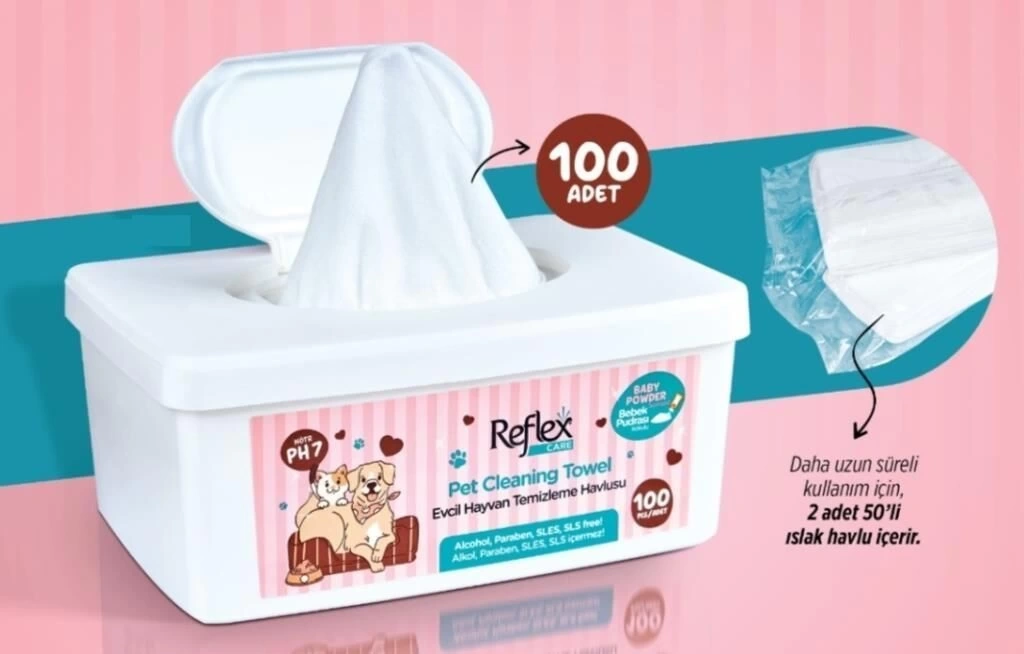 Reflex Evcil Hayvanlar İçin Çok Amaçlı Hijyenik Temizleme Havlusu 100 lü