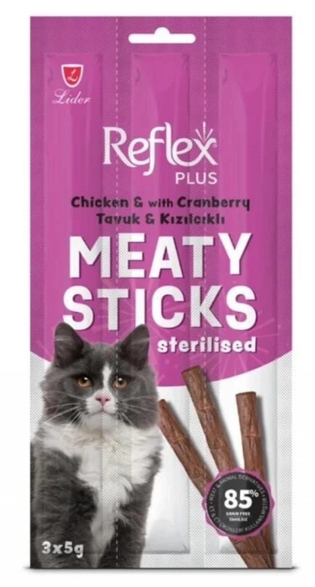Reflex Plus Meaty Sticks Tavuklu ve Kızılcıklı Çubuk Kısırlaştırılmış Yeti̇şki̇n Kedi̇ Ödül Maması 15 g