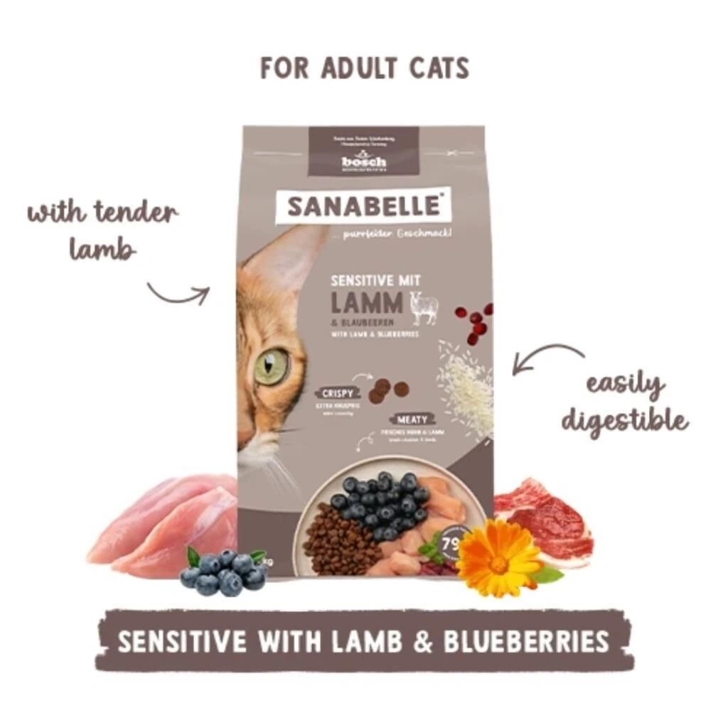 Sanabelle Sensitive Lamb, hassas mide ve sindirim sistemlerine sahip olan ve bu nedenle beslenme açısından duyarlılığa sahip hassas kediler için özel olarak geliştirilmiştir.