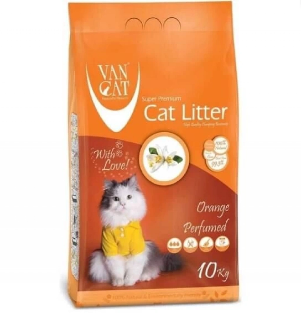 Portakal Kokulu VanCat W225 kedi kumu süper hızlı topaklanır, kötü kokuyu hapsederken etrafa portakal kokusu bırakır.